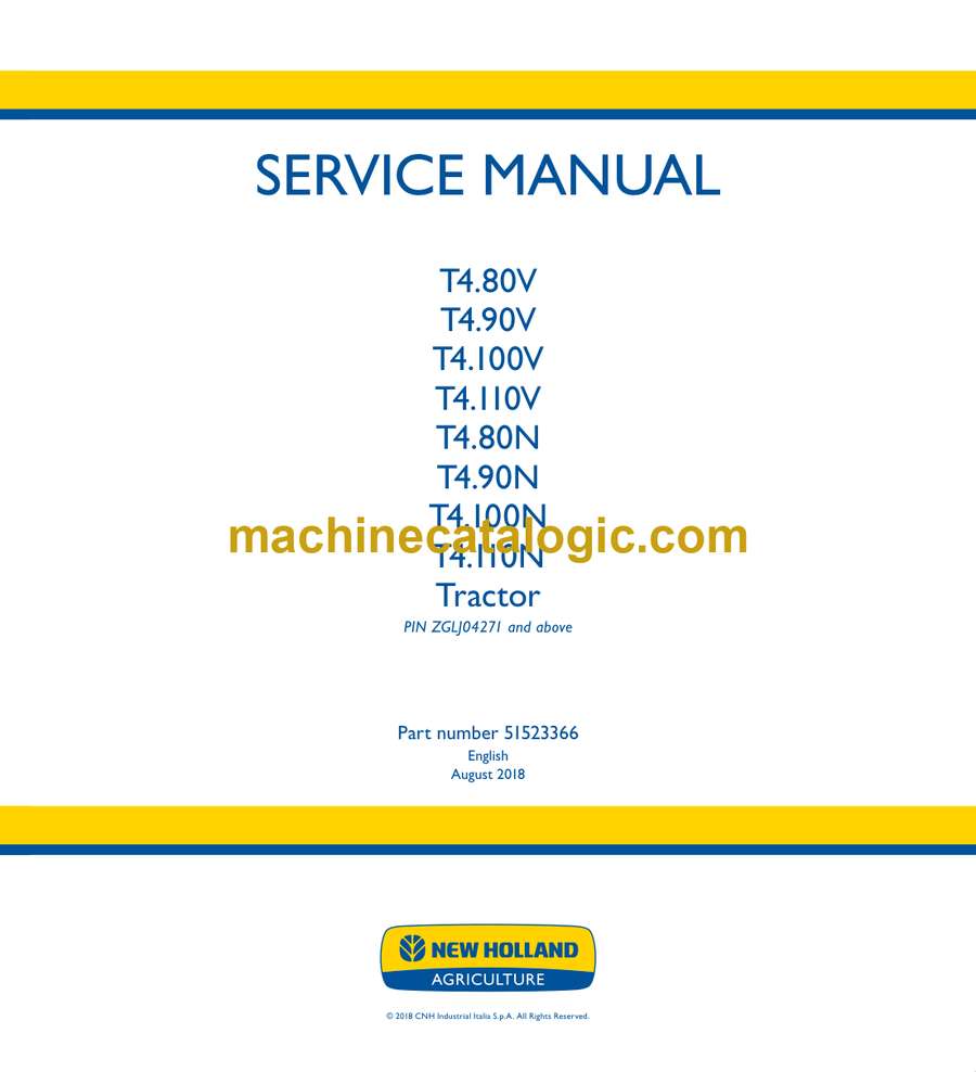New Holland T4.80V, T4.90V, T4.100V, T4.110, VT4.80N, T4.90N, T4.100N, T4.110N Tractor Service Manual (51523366)