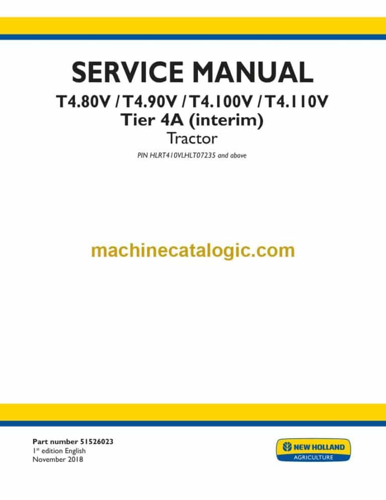 New Holland T4.80V, T4.90V, T4.100V, T4.110V Tier 4A Interim Tractor Service Manual (51526023)