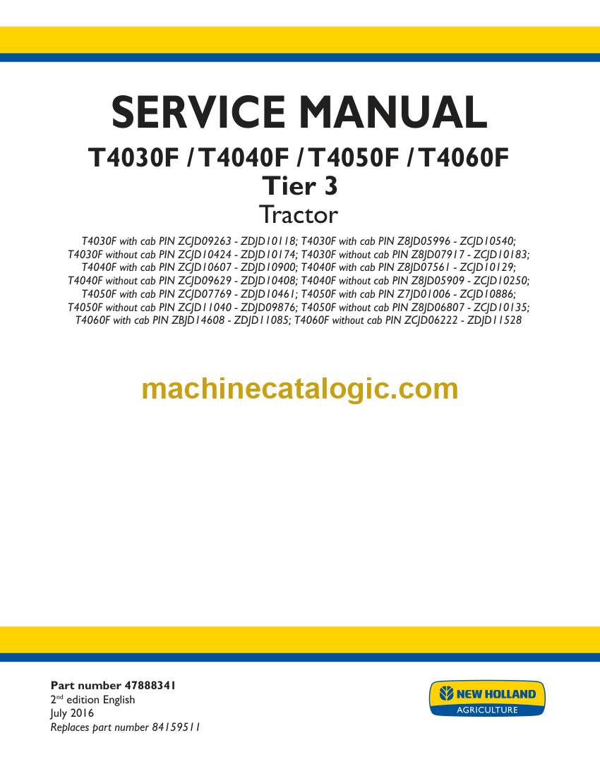 Model: T4030F, T4040F, T4050F, T4060F Tier 3 Tractor