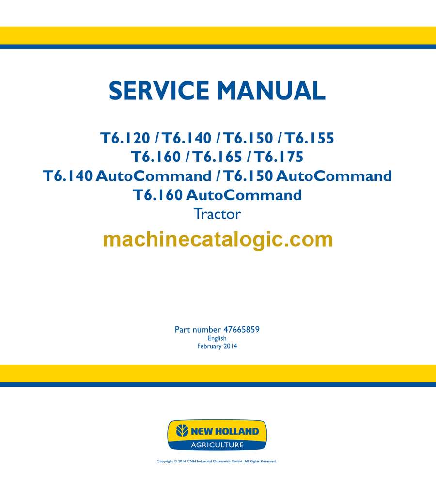 Model: T6.120, T6.140, T6.150, T6.155, T6.160, T6.165, T6.175, T6.140 AutoCommand, T6.150 AutoCommand T6.160 AutoCommand Tractor