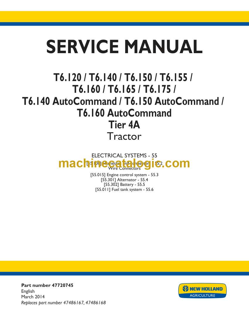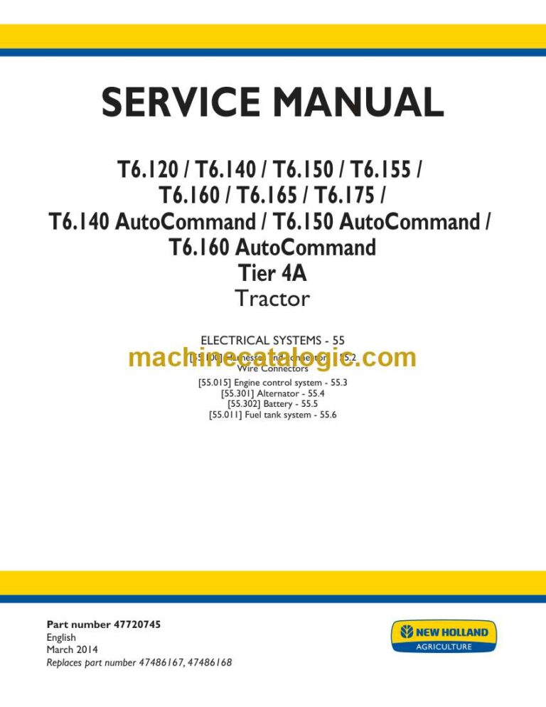 Model: T6.120, T6.140, T6.150, T6.155, T6.160T6.165, T6.175, T6.140 AutoCommand, T6.150 AutoCommand, T6.160 AutoCommand Tier 4A Tractor