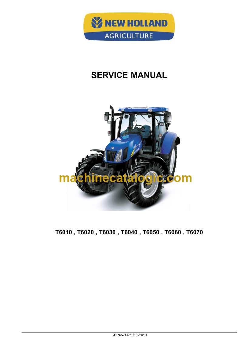 New Holland T6010 , T6020 , T6030 , T6040 , T6050 , T6060 , T6070 Tractor Service Manual (84276574A)
