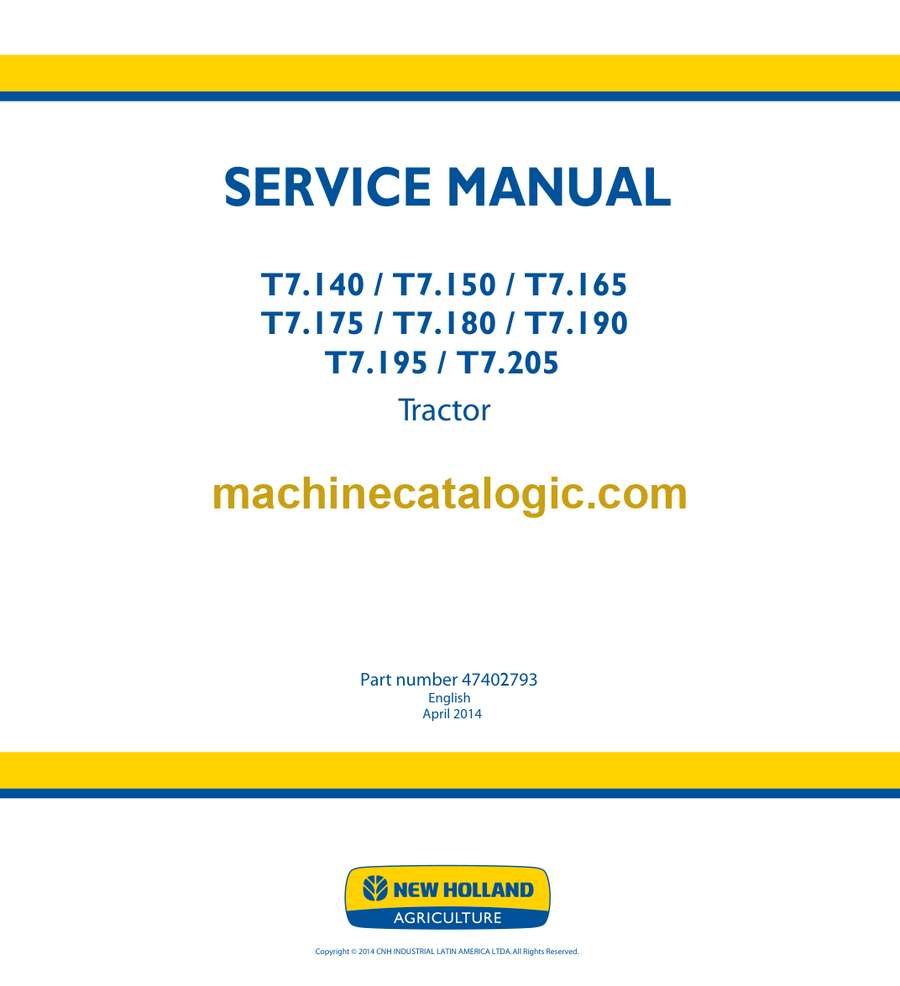 New Holland T7.140, T7.150, T7.165, T7.175, T7.180, T7.190, T7.195, T7.205 Tractor Service Manual (47402793)
