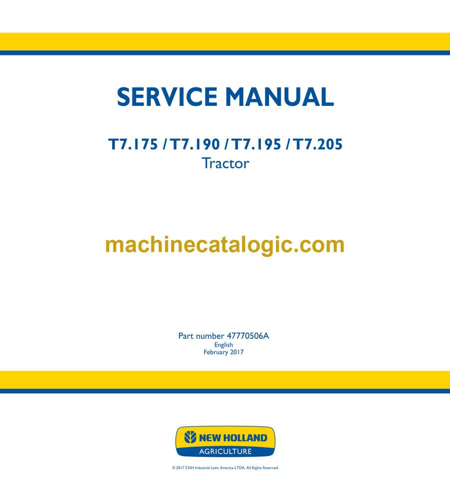 Model: T7.175, T7.190, T7.195, T7.205 Tractor