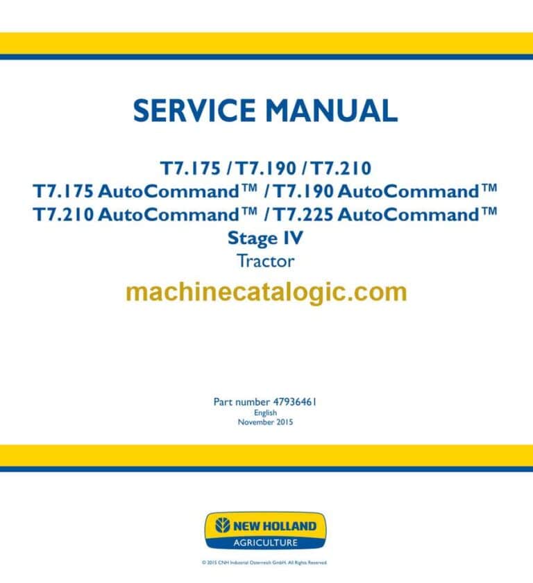 Model: T7.175, T7.190, T7.210, T7.175 AutoCommand™, T7.190 AutoCommand™, T7.210 AutoCommand™, T7.225 AutoCommand™ Stage IV Tractor