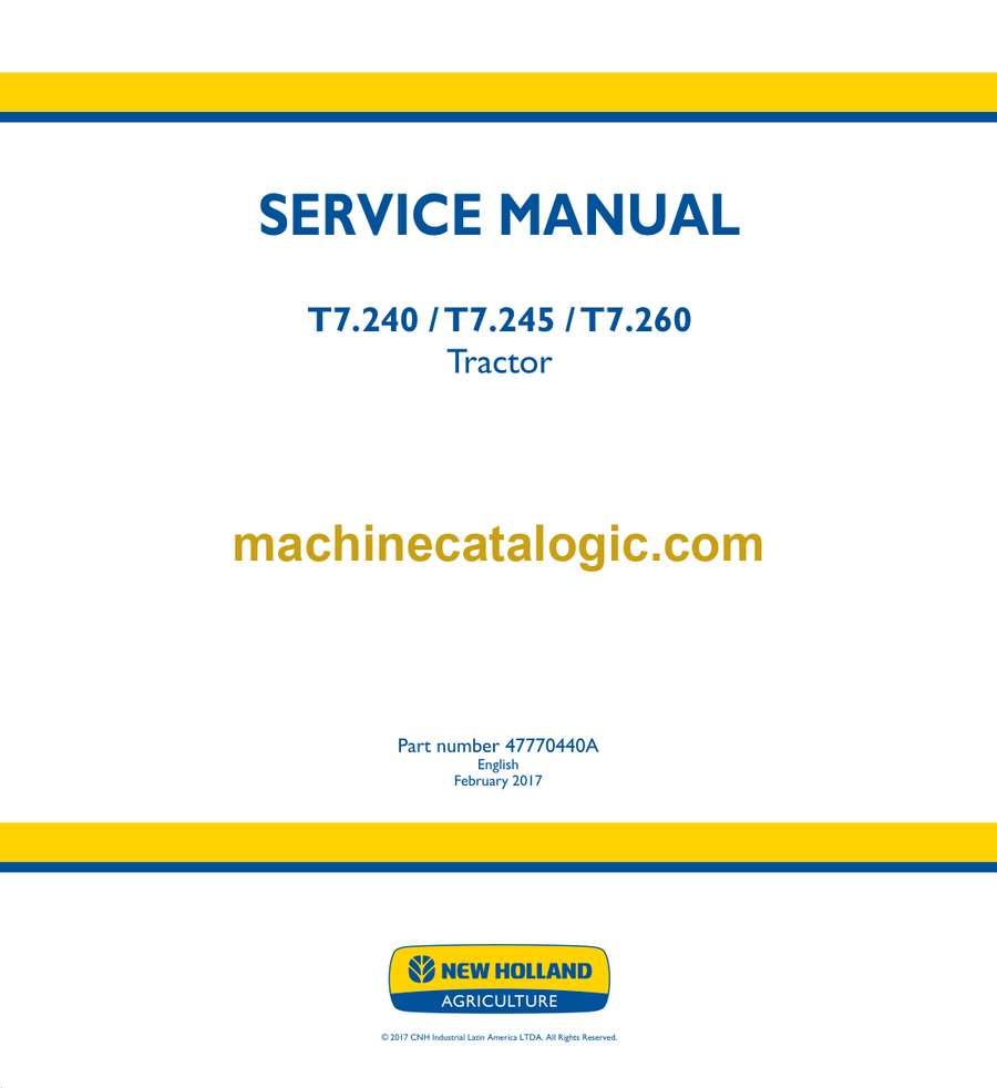 New Holland T7.240, T7.245, T7.260 Tractor Service Manual (47770440A)