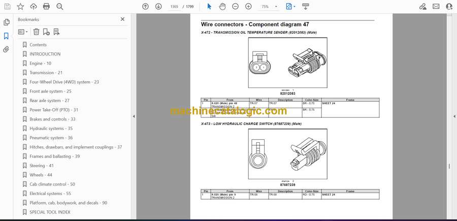 New Holland T7.240, T7.245, T7.260 Tractor Index: