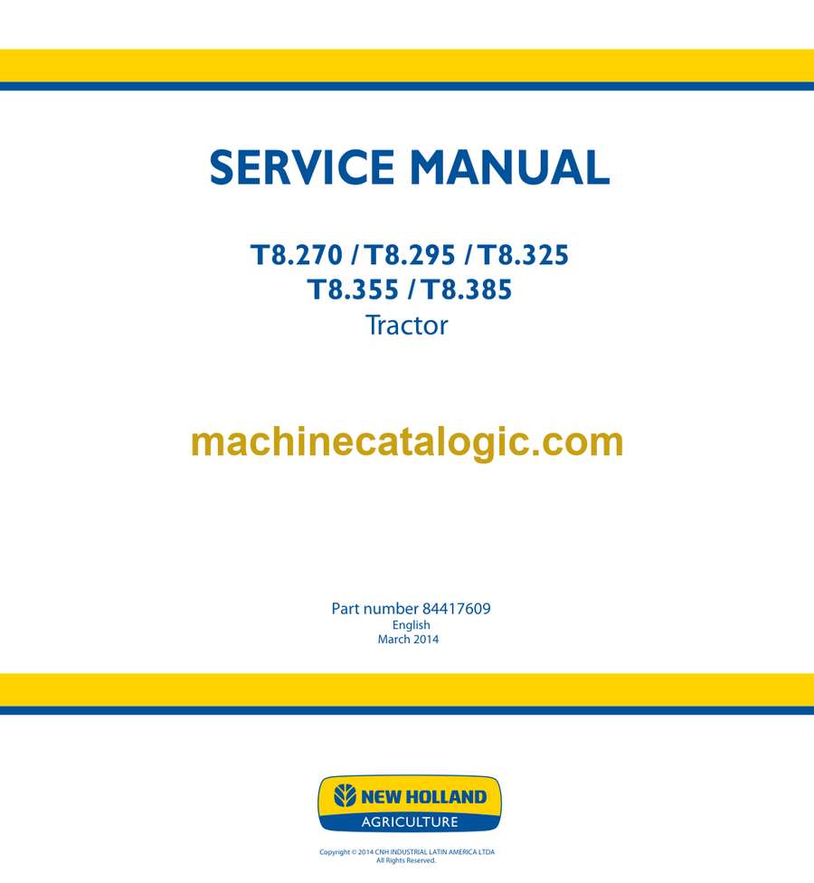 New Holland T8.270, T8.295, T8.325, T8.355, T8.385 Tractor Service Manual (84417609)