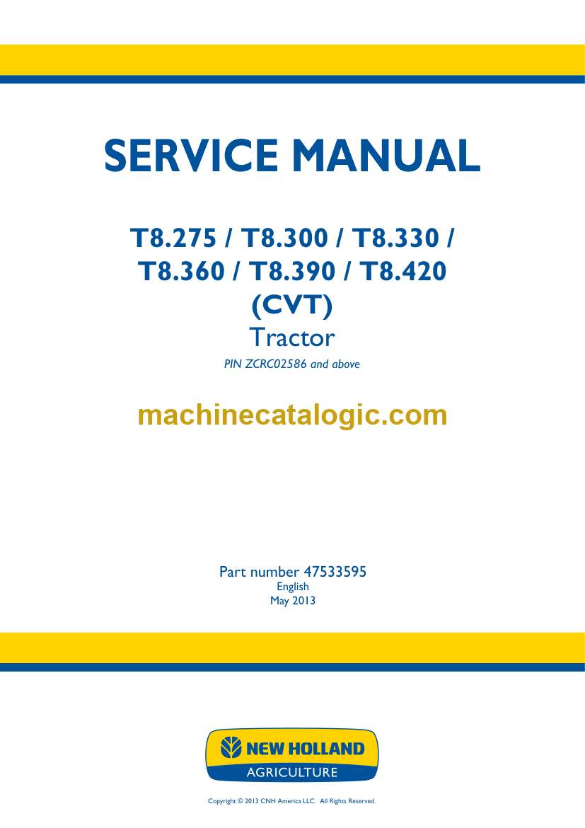Model: T8.275, T8.300, T8.330, T8.360, T8.390, T8.420 CVT Tractor