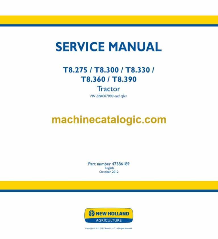 New Holland T8.275, T8.300, T8.330, T8.360, T8.390 Tractor Service Manual (47386189)