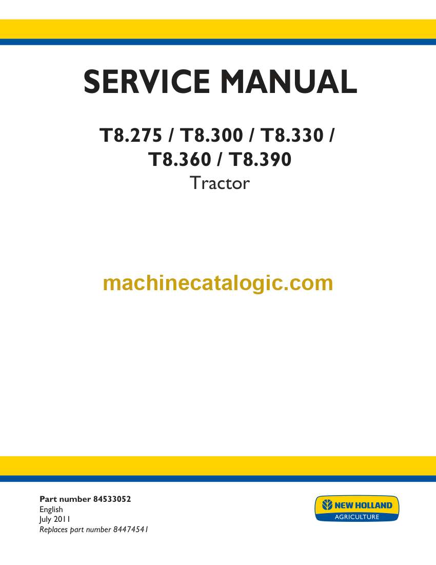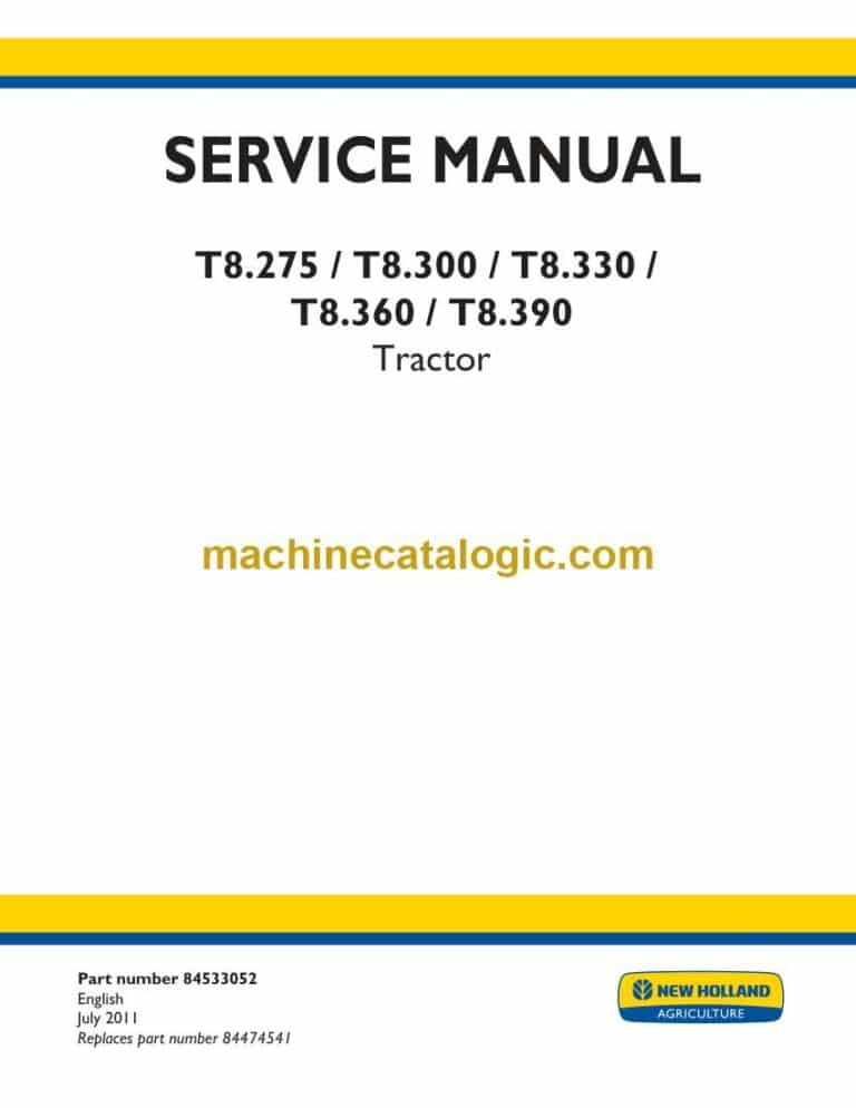 New Holland T8.275, T8.300, T8.330, T8.360, T8.390 Tractor Service Manual (84533052)