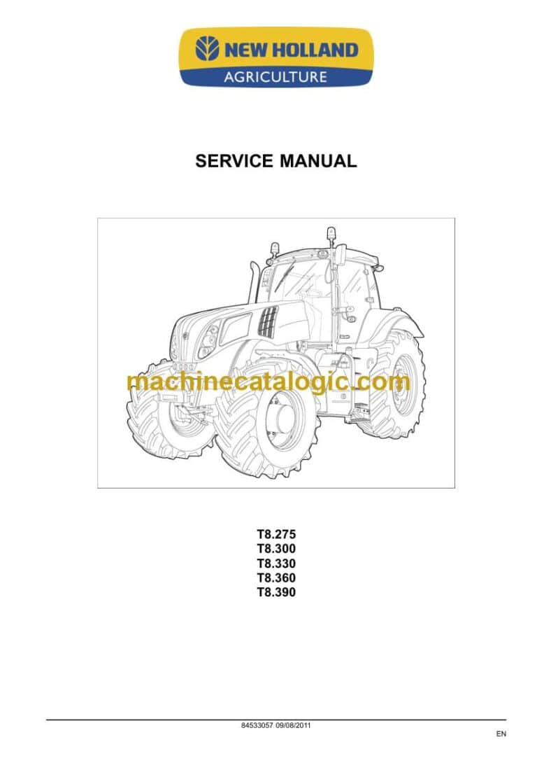 New Holland T8.275, T8.300, T8.330, T8.360, T8.390 Tractor Service Manual (84533057)