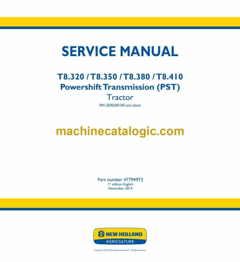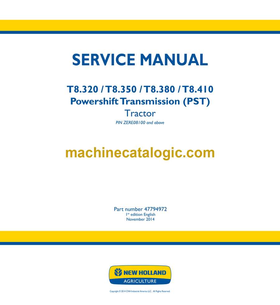 New Holland T8.320, T8.350, T8.380, T8.410 PST Tractor Service Manual (47794972)