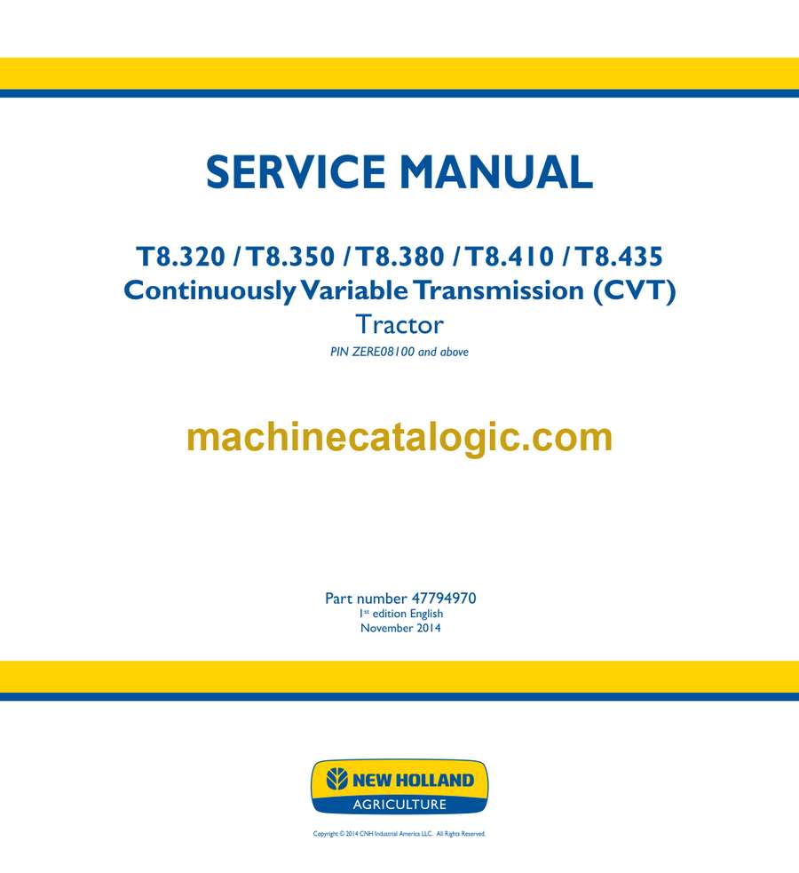 New Holland T8.320, T8.350, T8.380, T8.410, T8.435 CVT Tractor Service Manual (47794970)