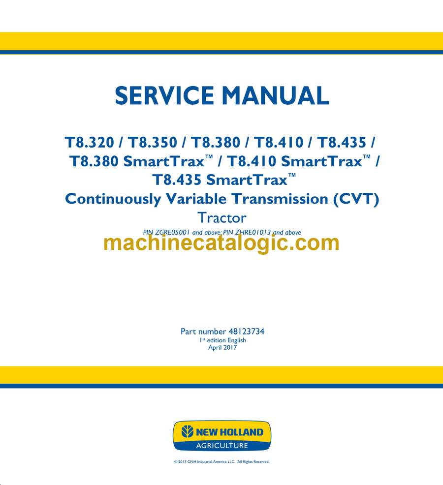 New Holland T8.320, T8.350, T8.380, T8.410, T8.435, T8.380 SmartTrax™, T8.410 SmartTrax™, T8.435 SmartTrax™ CVT Tractor Service Manual (48123734)