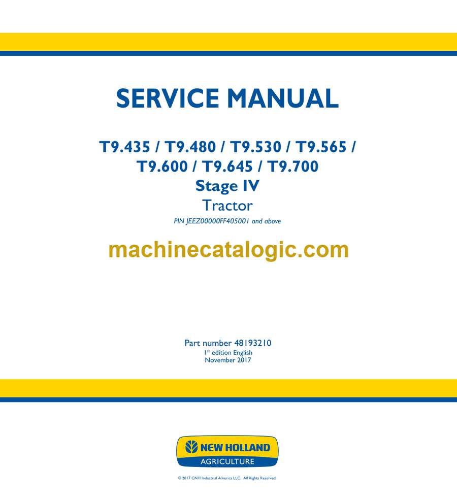 Model: T9.435, T9.480, T9.530, T9.565, T9.600, T9.645, T9.700 Stage 4 Tractor