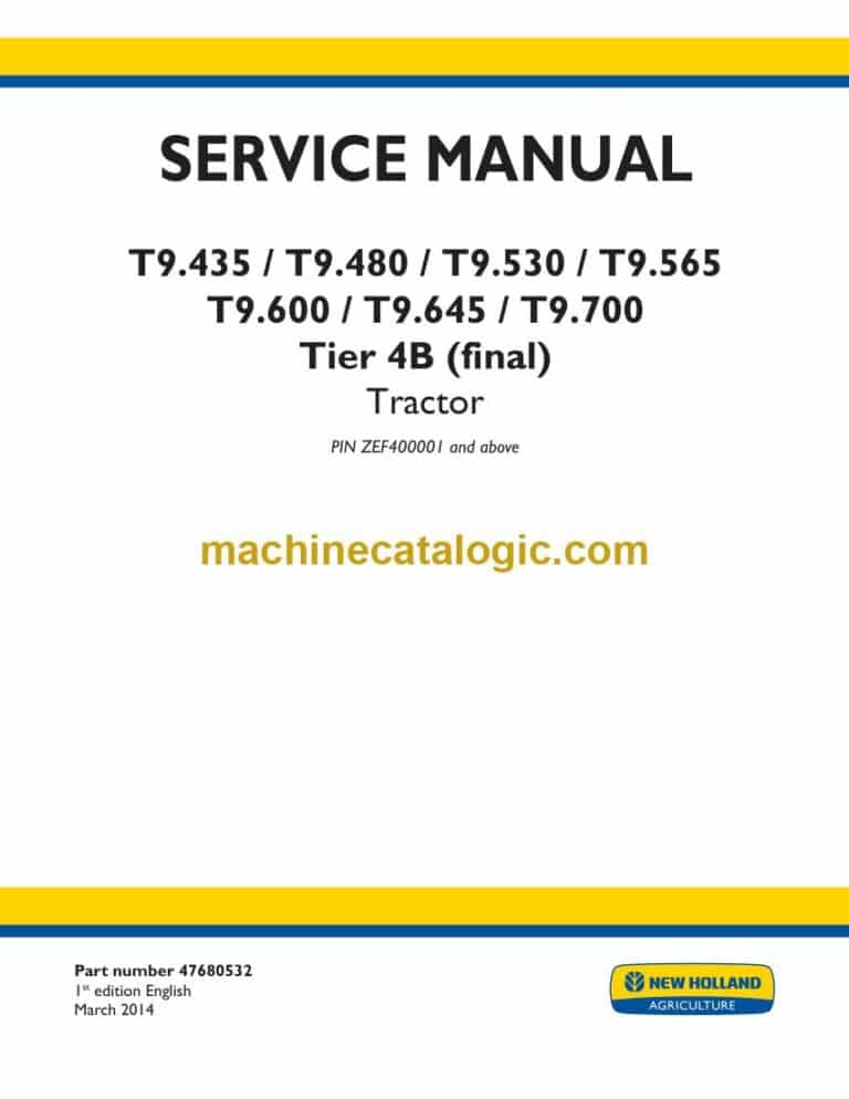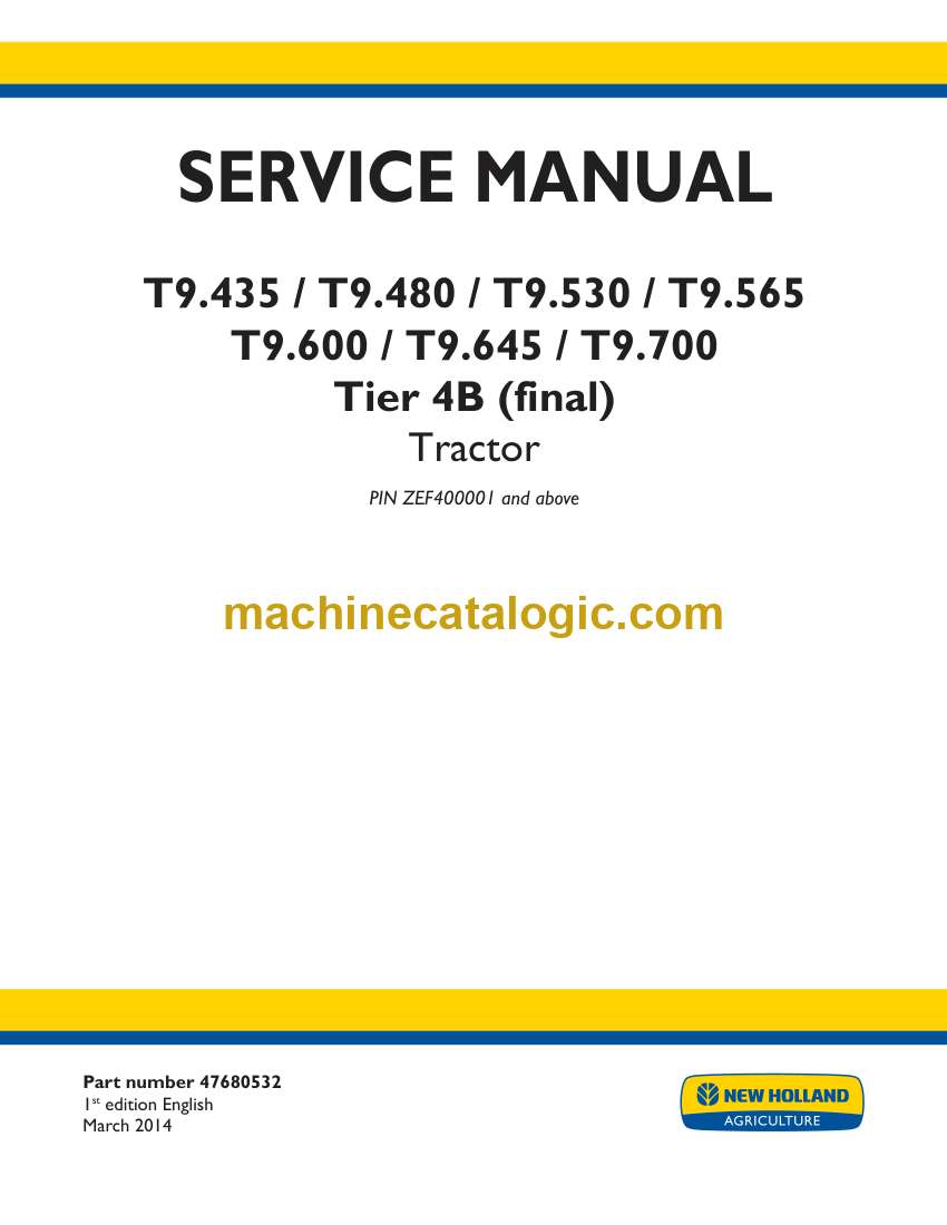 Model: T9.435, T9.480, T9.530, T9.565, T9.600, T9.645, T9.700 Tier 4B Final Tractor