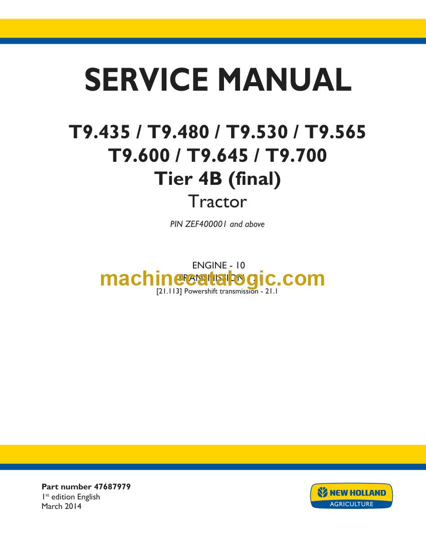 Model: T9.435, T9.480, T9.530, T9.565, T9.600, T9.645, T9.700 Tier 4B Final Tractor