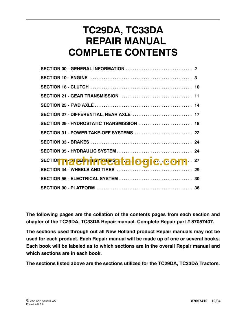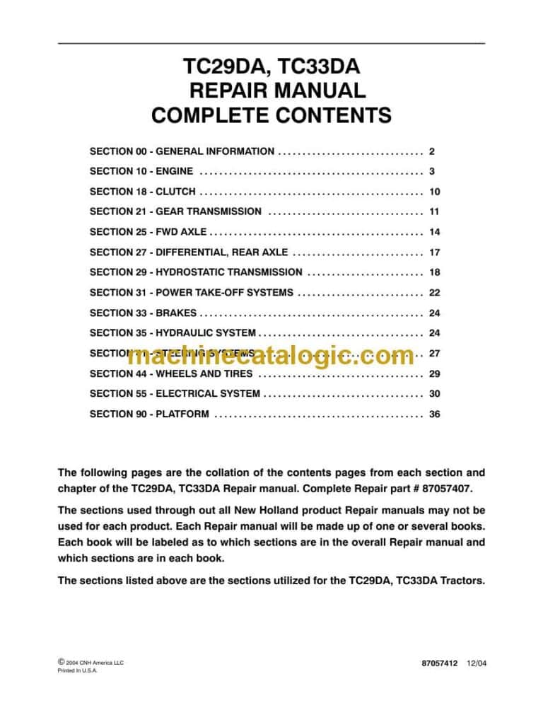 New Holland TC29DA, TC33DA Tractor Repair Manual