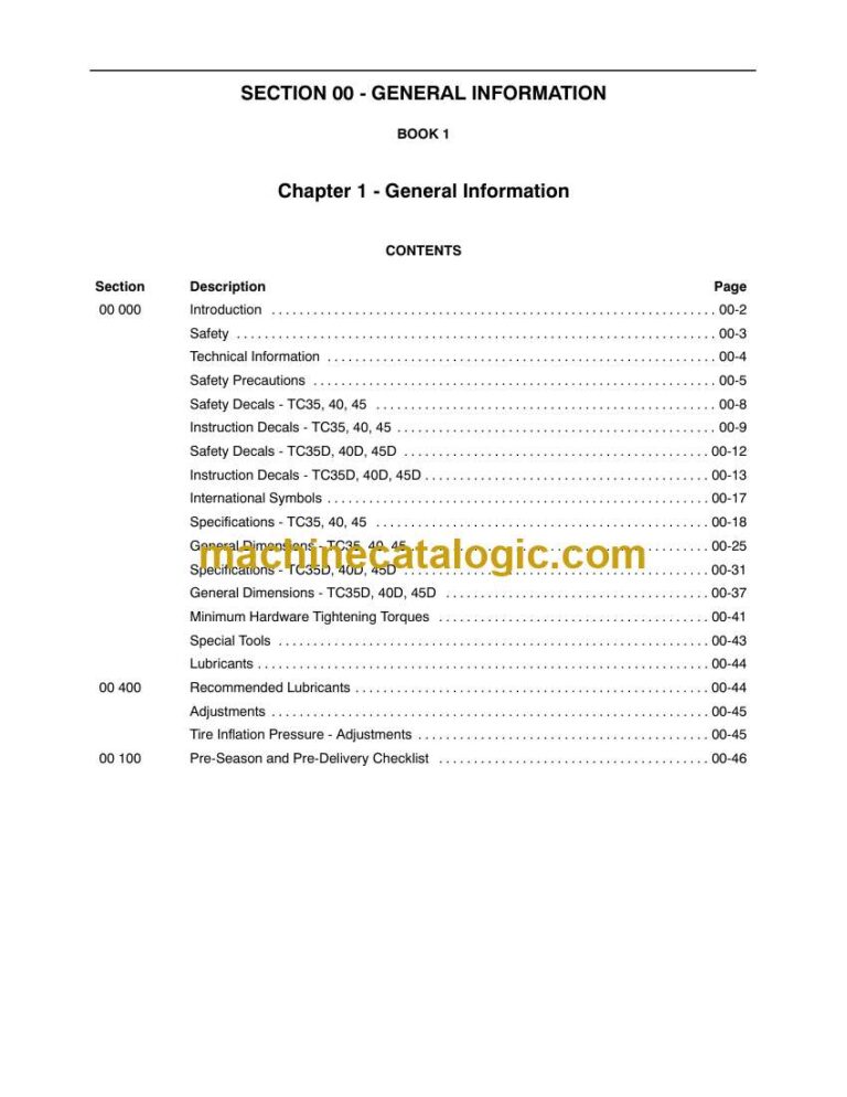 Model: TC35, TC35D, TC40, TC40D, TC45, TC45D Tractor