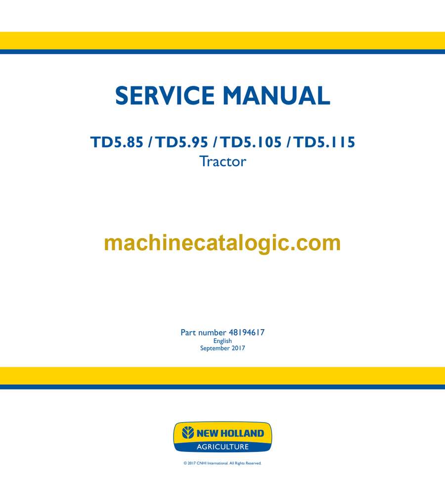New Holland TD5.85, TD5.95, TD5.105, TD5.115 Tractor Service Manual (48194617)