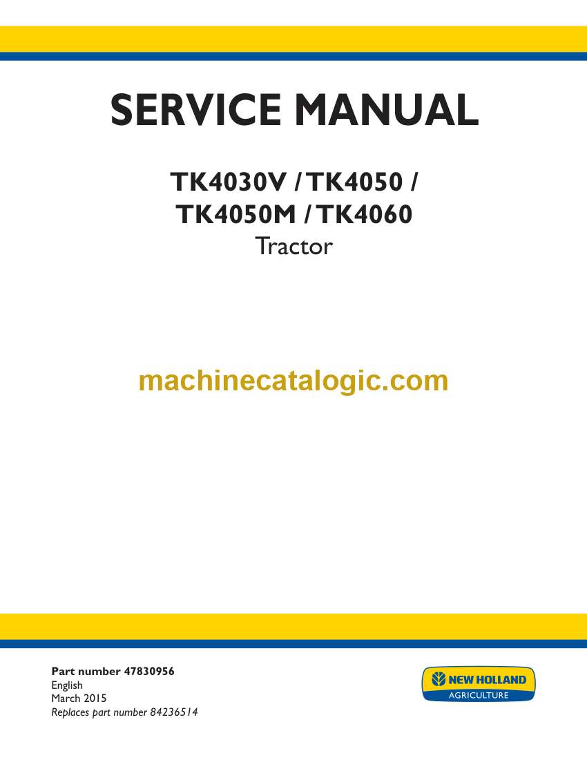 New Holland TK4030V, TK4050, TK4050M, TK4060 Tractor Service Manual (47830956)