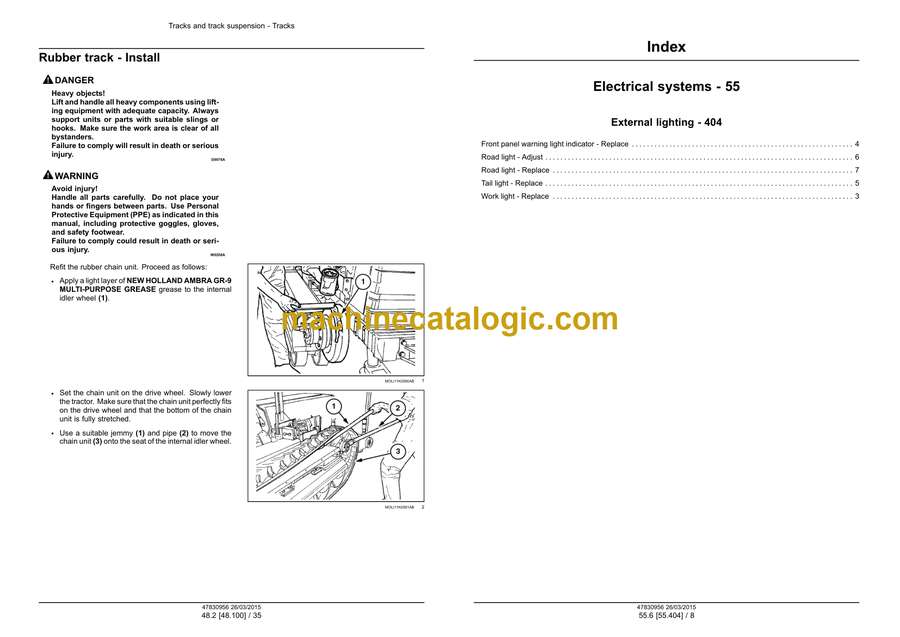 New Holland TK4030V, TK4050, TK4050M, TK4060 Tractor Index: