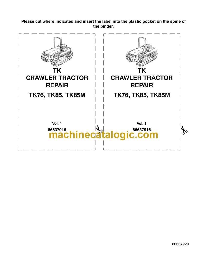 New Holland TK76, TK85, TK85M Crawler Tractor Repair Manual (86637916)