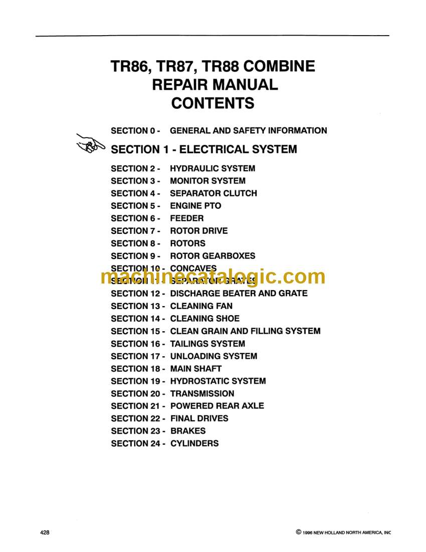 New Holland TR86, TR87, TR88 Combine Repair Manual (40008601)