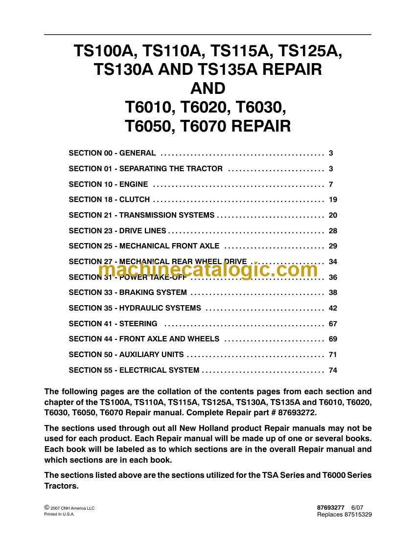 Model: TS100A, TS110A, TS115A, TS125A, TS130A, TS135A, T6010, T6020, T6030, T6050, T6070 Tractor