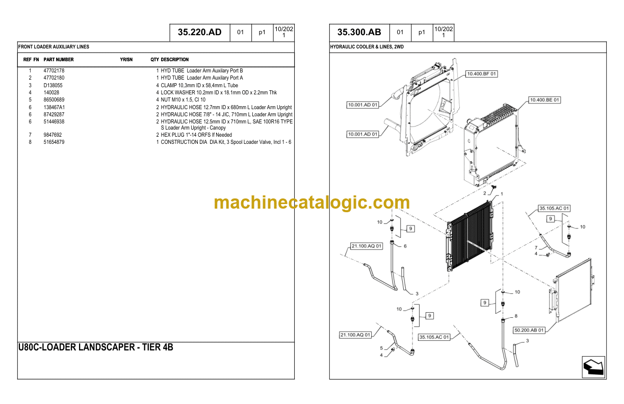This U80C loader landscaper usually lives in dirt, gravel, and road-base work—loading trucks, grading pads, and feeding material all day. This parts catalog is what I pull up when I need to identify exactly which version of a component is on your machine before I order anything. Say you bend a steering cylinder or lose a bucket pin: I use this book to trace the assembly, see every bushing, seal, and fastener in the stack, and make sure we don’t miss the little pieces that stop the job when they’re wrong.