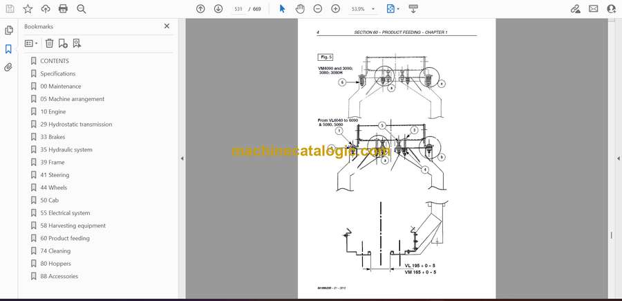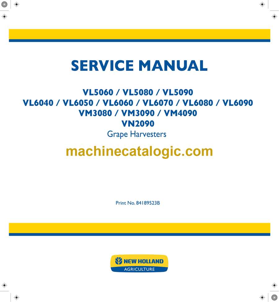 Model: VL5060, VL5080, VL5090, VL6040, VL6050, VL6060, VL6070, VL6080, VL6090, VM3080, VM3090, VM4090, VN2090 Grape Harvesters