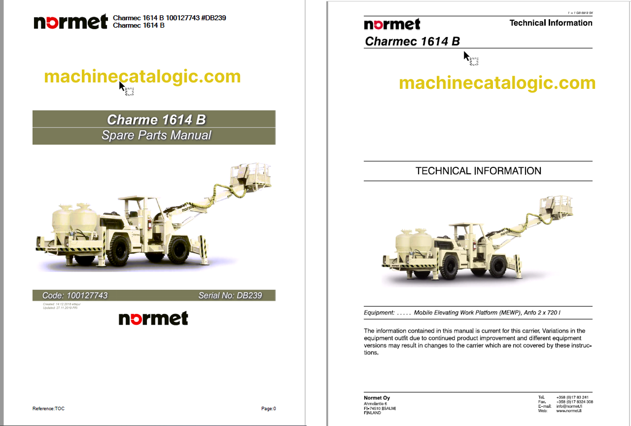 Normet Charmec 1614B Service and Parts Manual (100127743) (#DB239)