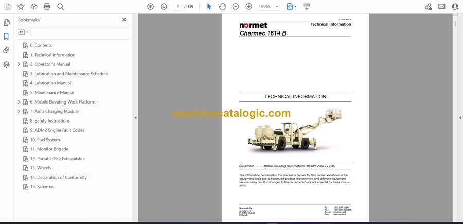 Normet Charmec 1614B Technical Information (5F7C795_1000) Index: