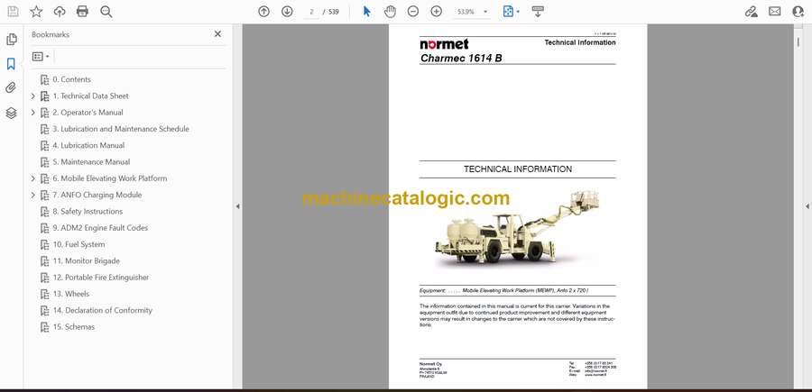 Normet Charmec 1614B Technical Information (5F7D3FF_1000) Index: