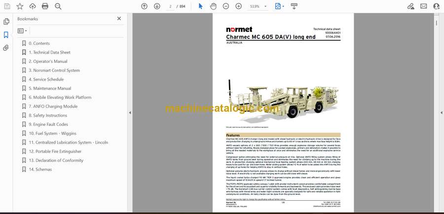 Normet Charmec MC605 DA(V) Long End Technical Information (5F7F440_1000) Index: