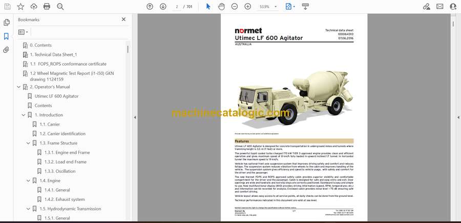 Normet Utimec LF600 Agitator Technical Information (5F7CAE7_1000) Index: