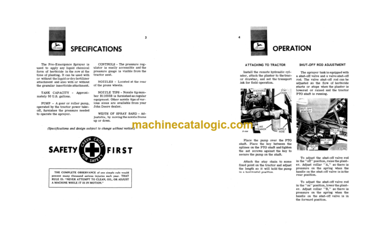 PRE-Emergance Sprayer for 493A Cotton and Corn Planter or 494,494A, 495 or Corn Planters Operator’s Manual (OMB25221)