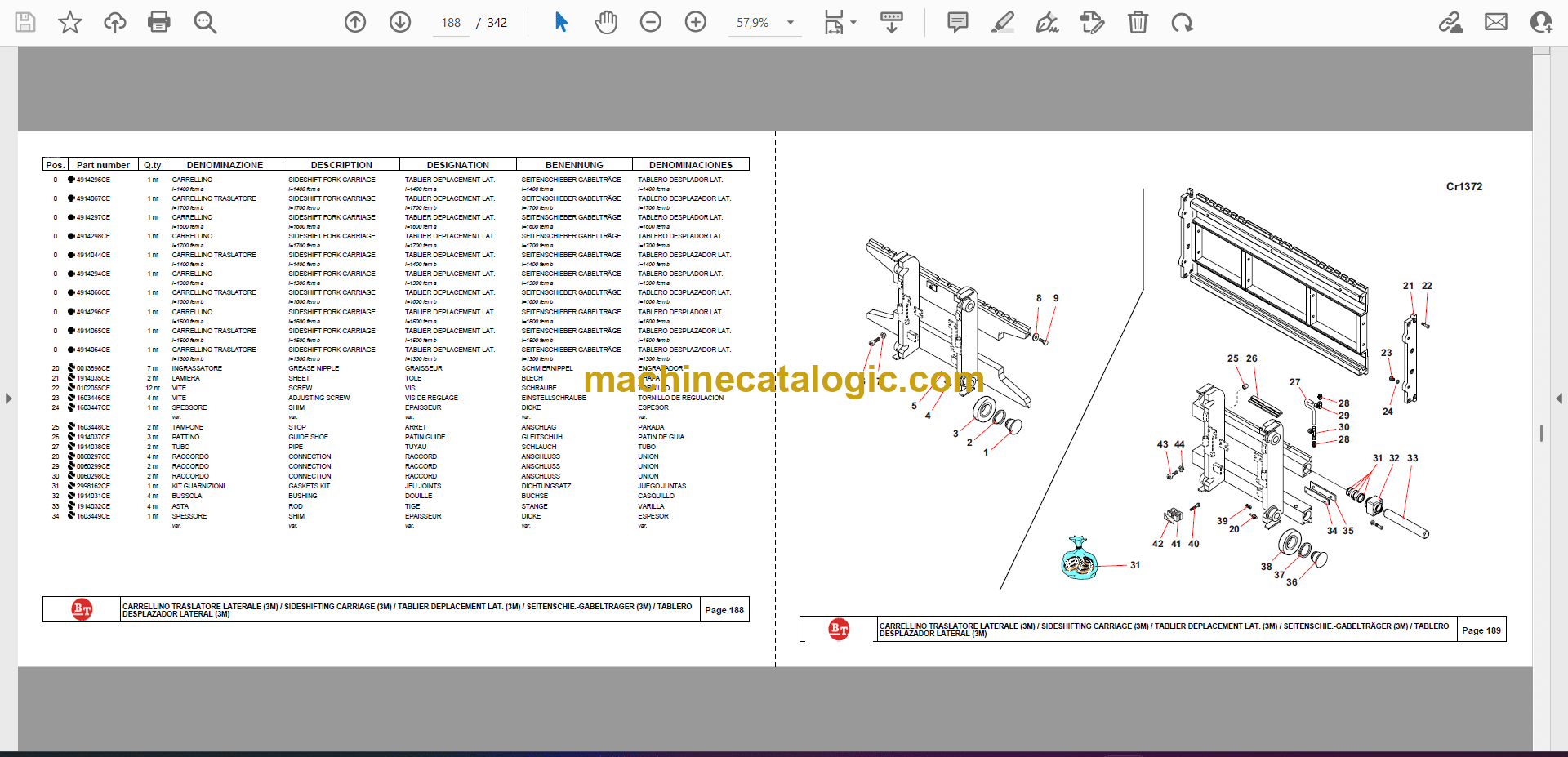 CARRELLINO TRASLATORE LATERALE (2M) / SIDESHIFTING CARRIAGE (2M) / TABLIER DEPLACEMENT LAT. (2M) / SEITENSCHIEBER-GABELTRÄGER (2M) / DESPLAZADOR LATERAL (2M)…………………………………. Page 270