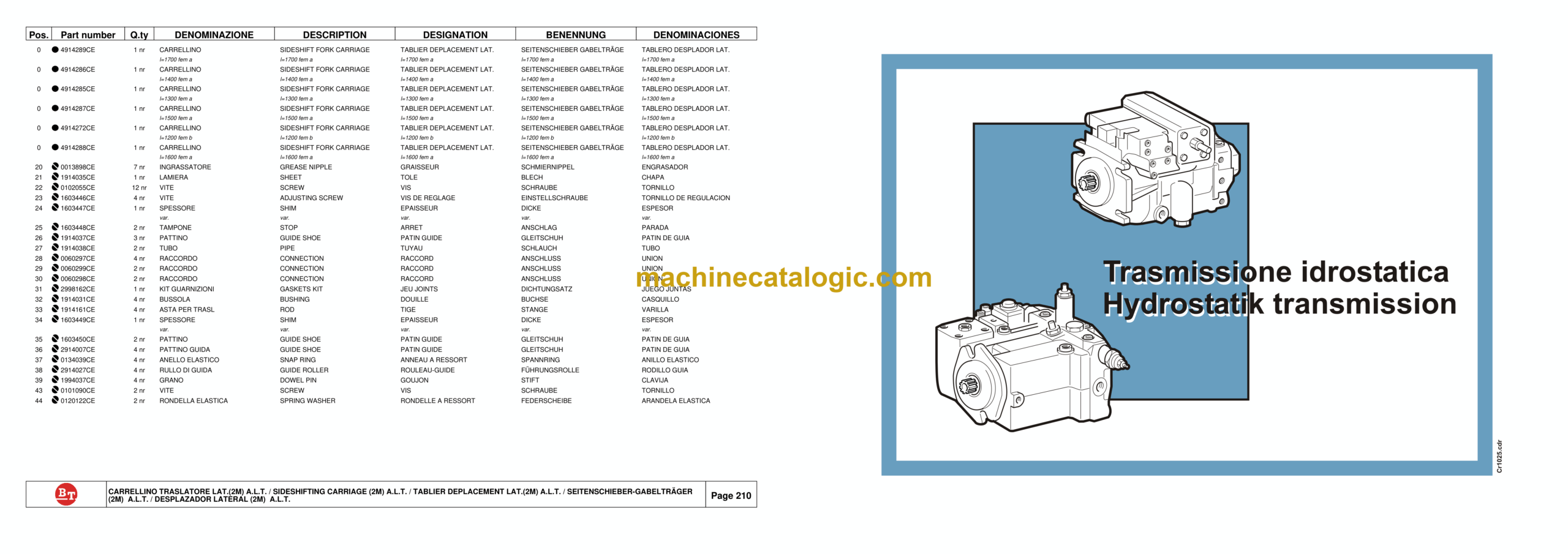 CARRELLINO TRASLATORE LAT.(2M) A.L.T. / SIDESHIFTING CARRIAGE (2M) A.L.T. / TABLIER DEPLACEMENT LAT.(2M) A.L.T. / SEITENSCHIEBER-GABELTRÄGER (2M) A.L.T. / DESPLAZADOR LATERAL (2M) A.L.T. Page 210