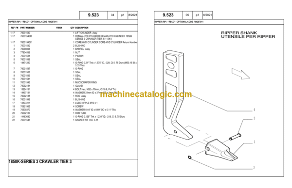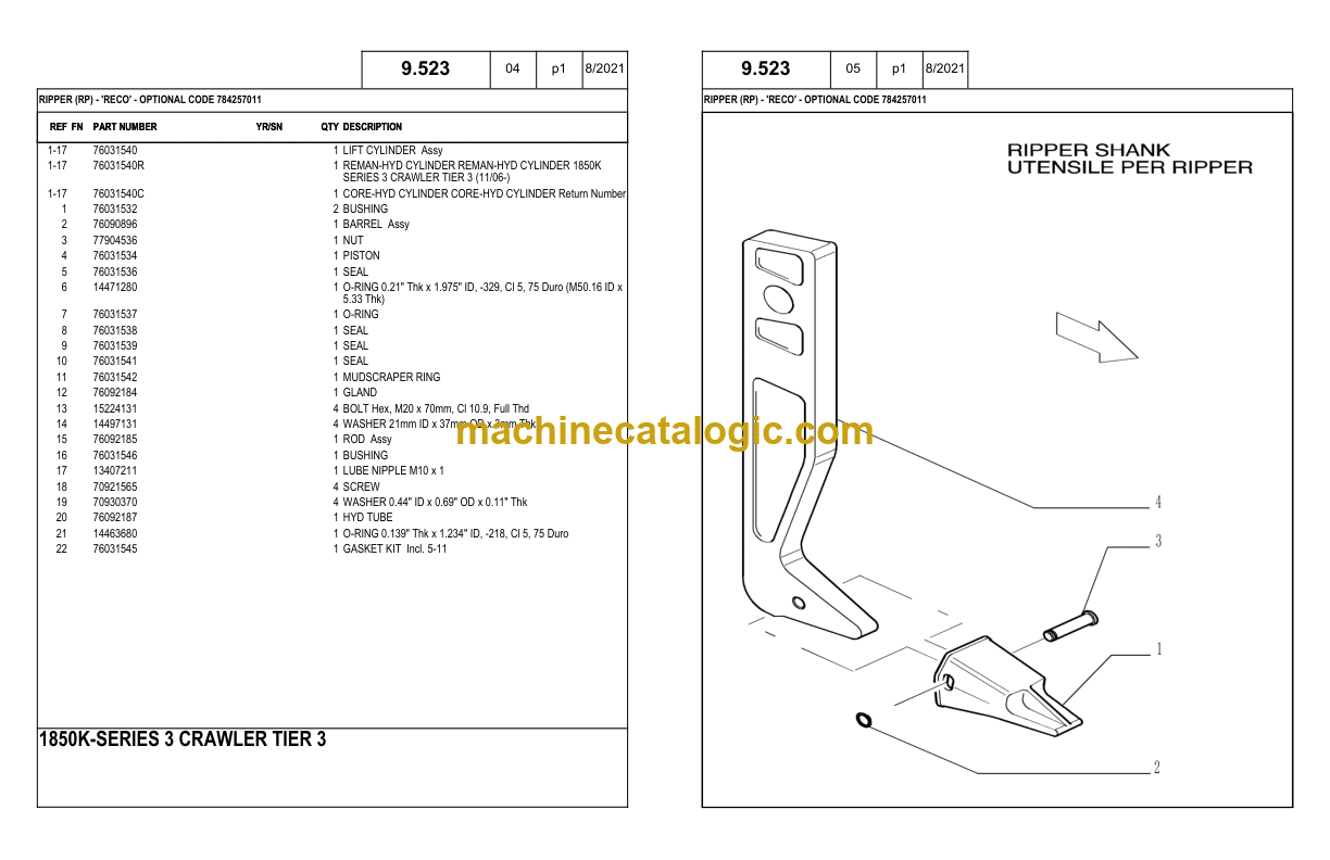 05 RIPPER (PD) – LIFT CYLINDERS – OPTIONAL CODE 784115041