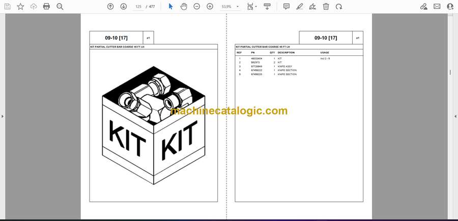 KIT SINGLE SICKLE ASSY COURSE 35 FT