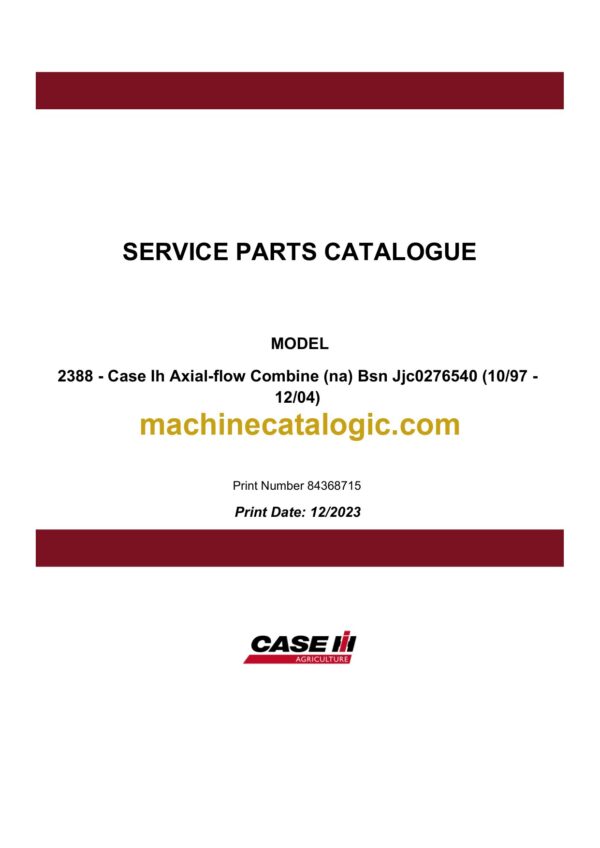 The Case 2388 Axial-Flow combine spends its life in dusty fields, running hard through harvest and chewing through heavy crop. This Service Parts Catalogue is what I use at the bench or parts counter to pin down exactly which components belong on your machine before we order anything. If a rotor drive belt shreds or a fan shroud cracks, I flip to the exploded views, trace how everything stacks together, and verify the right revision so we don’t get the wrong parts halfway through harvest.