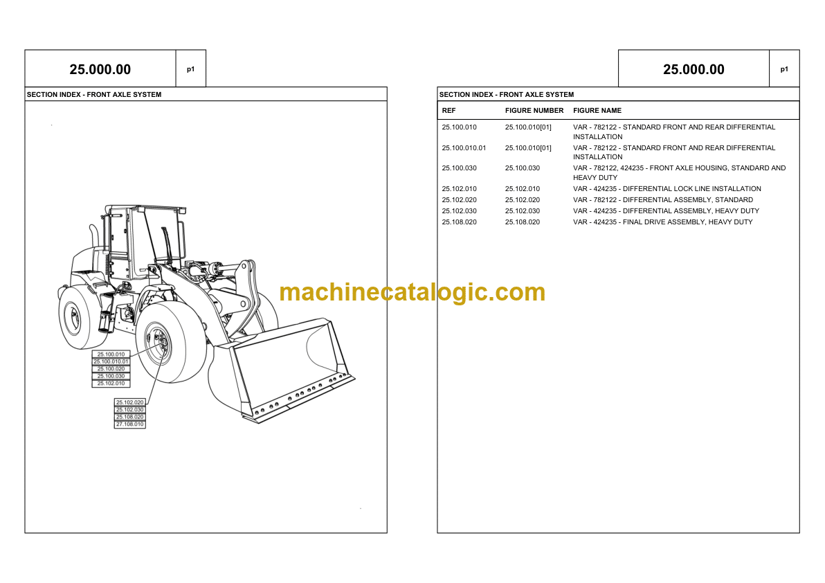 SECTION INDEX – FRONT LOADER AND BUCKET