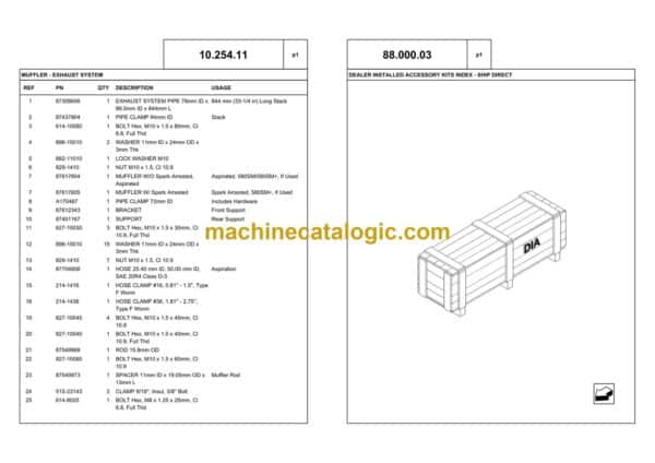 SECTION INDEX – FRONT LOADER AND BUCKET