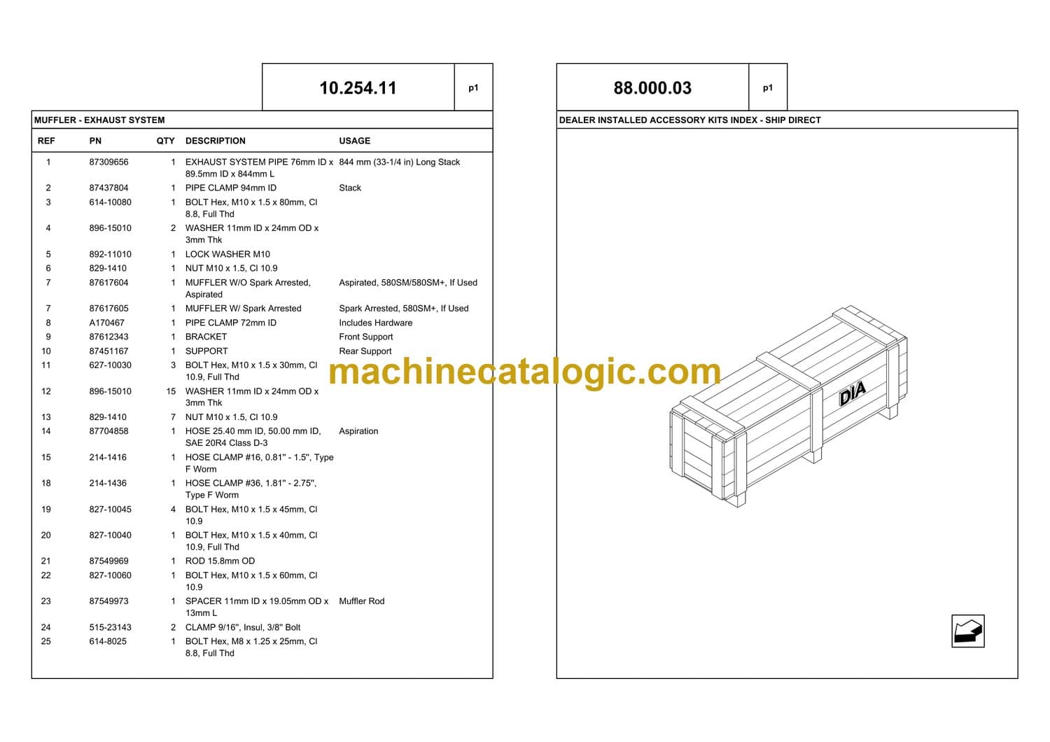 SECTION INDEX – BOOMS, DIPPERS & BUCKET