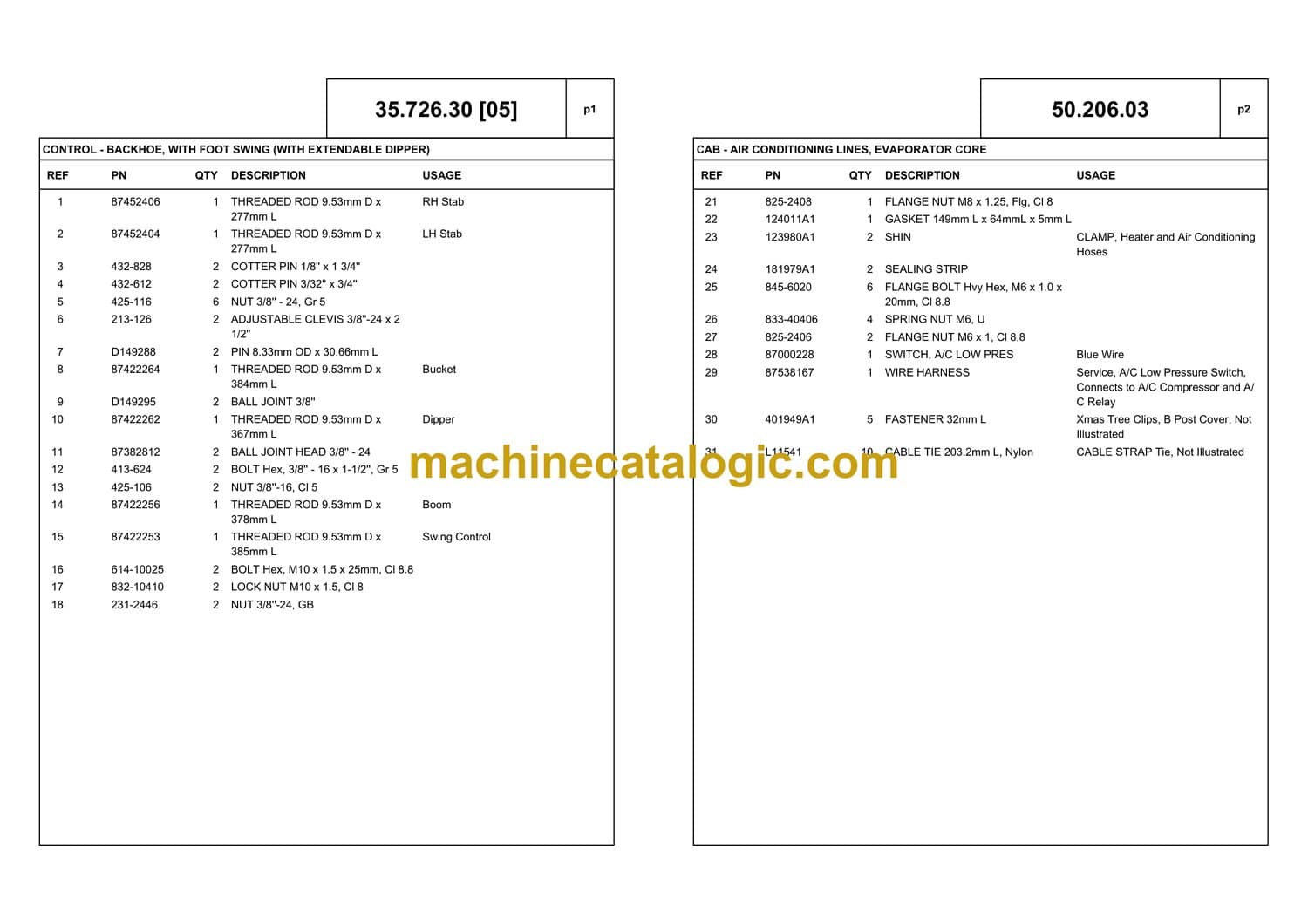 PICTORIAL INDEX – BOOMS, DIPPERS & BUCKET