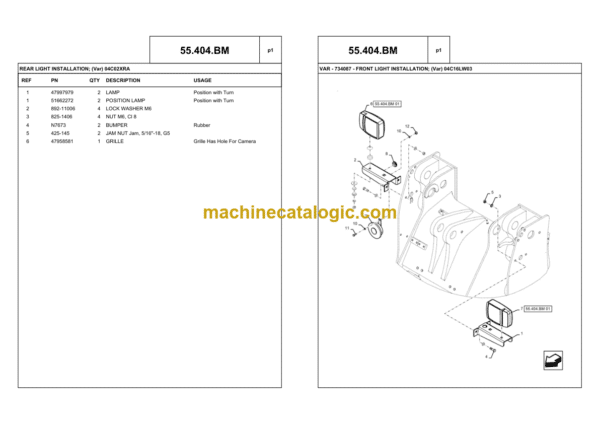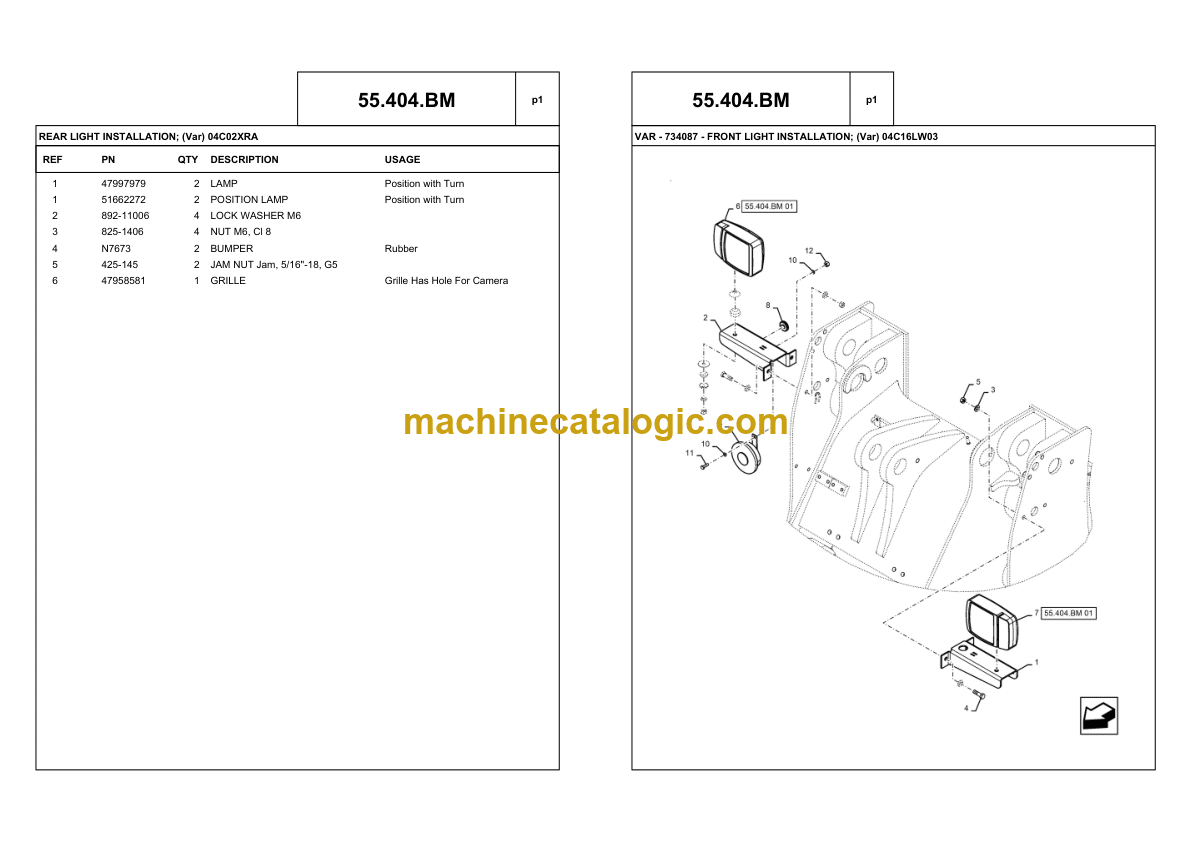 55.404.BM VAR – 734087 – FRONT LIGHT INSTALLATION; (Var) 04C16LW03