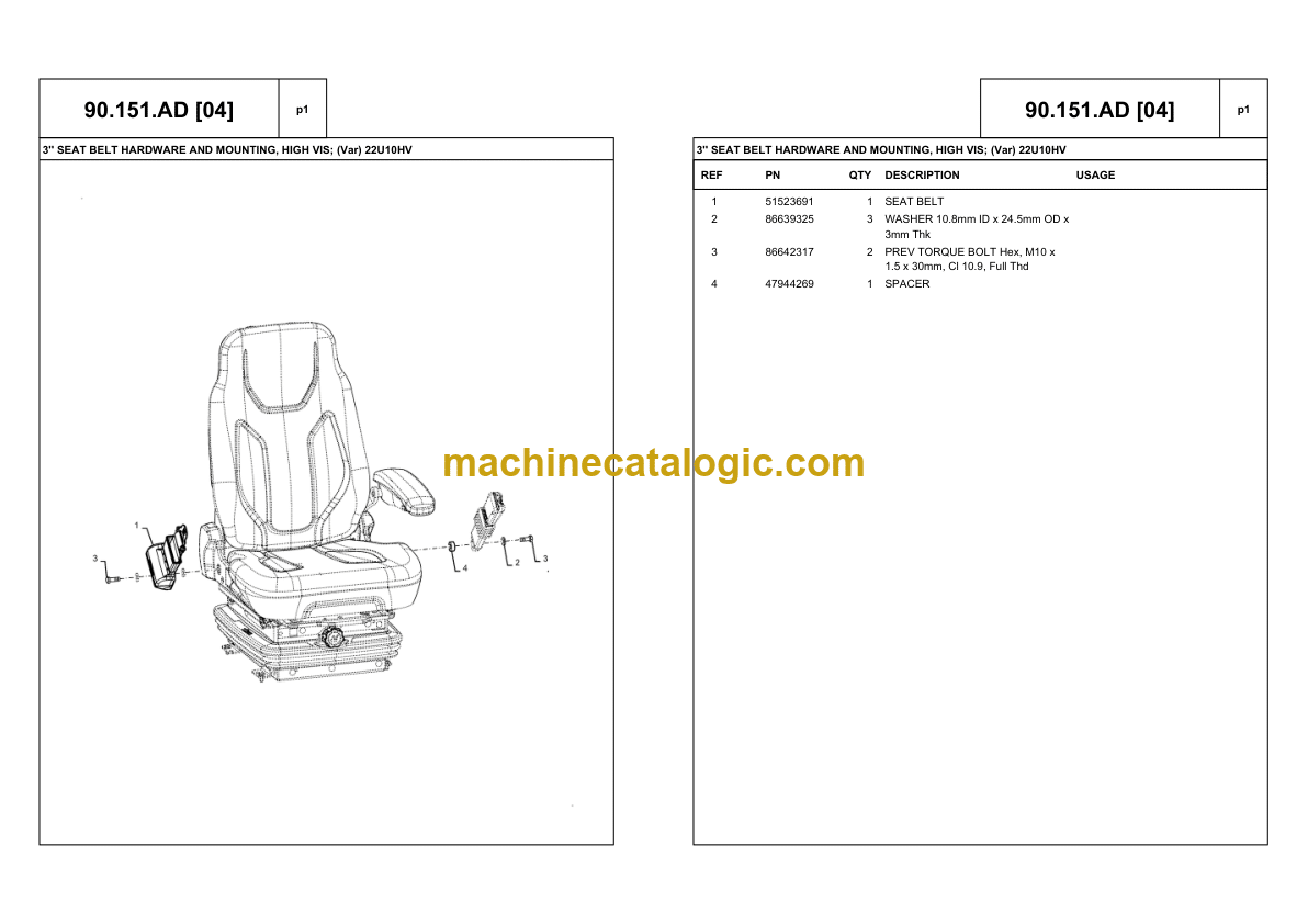 90.151.AD [04] 3” SEAT BELT HARDWARE AND MOUNTING, HIGH VIS; (Var) 22U10HV