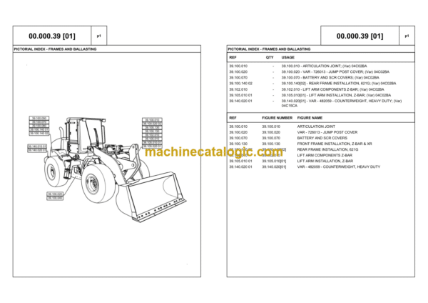 PICTORIAL INDEX – FRONT LOADER AND BUCKET